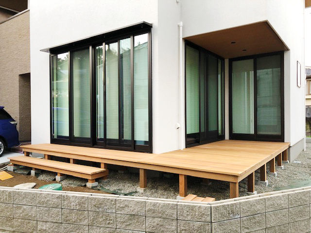 カーポート、機能門柱、柵、樹脂デッキを設置しました。